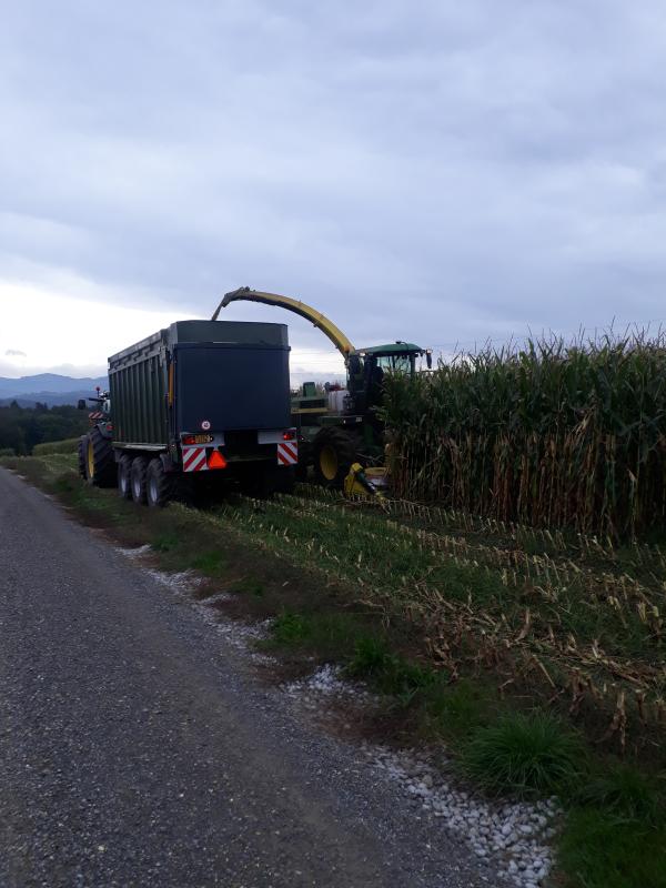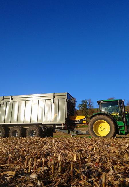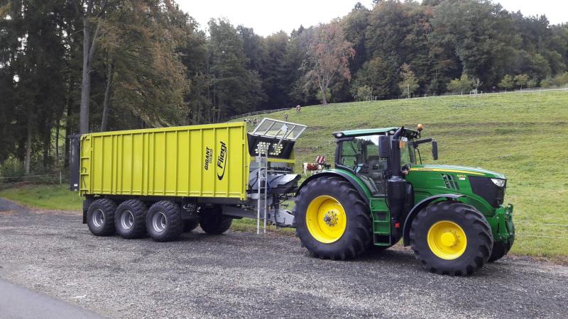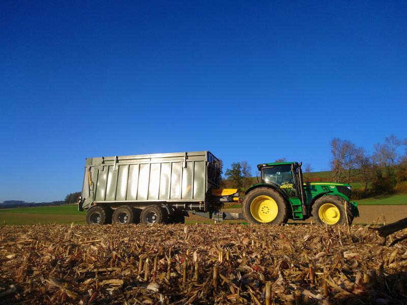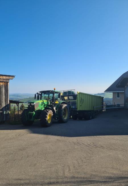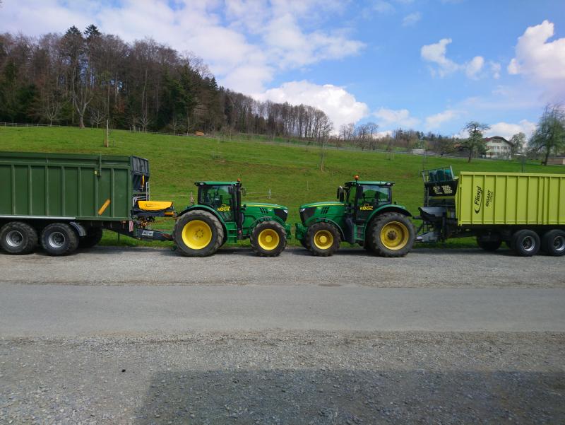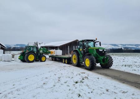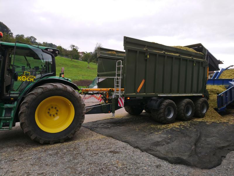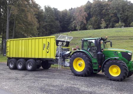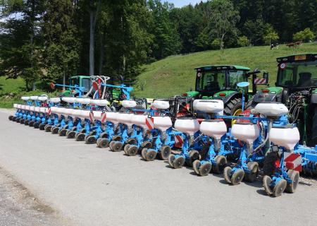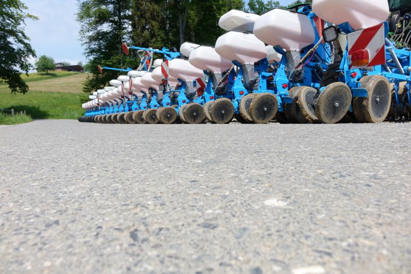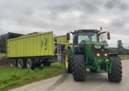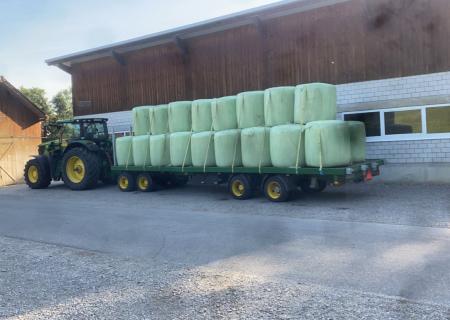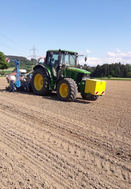 Bald darauf gesellte sich der Abschiebewagen Fliegl ASW 281 zum kleinen Maschinenpark dazu, welcher zusätzlich zur Maissaat auch Transportarbeiten mit sich brachte.