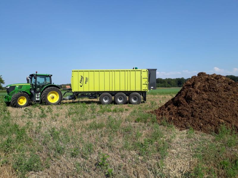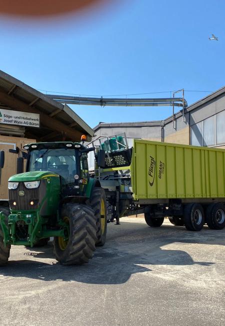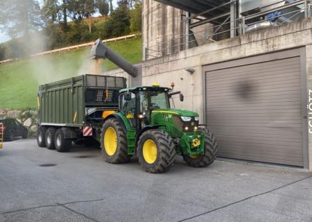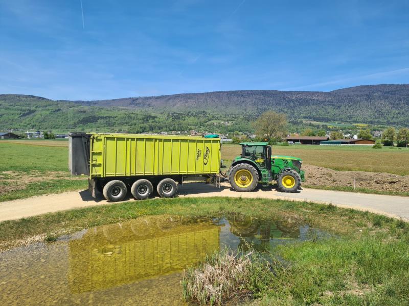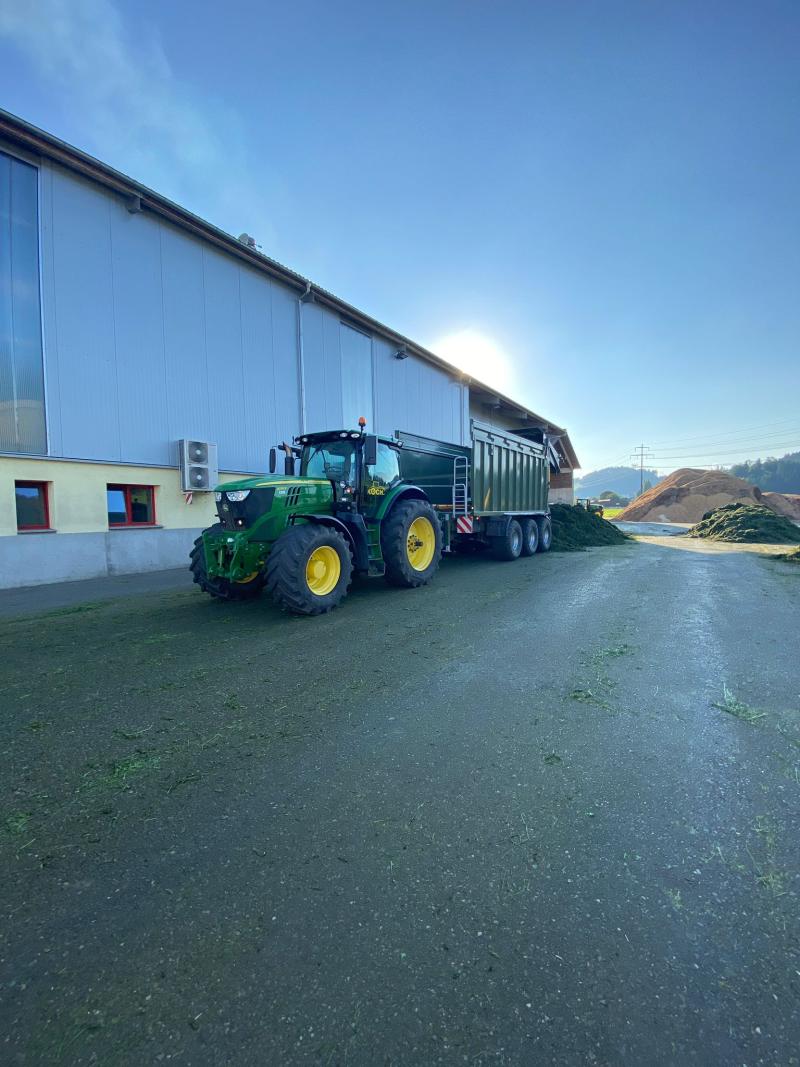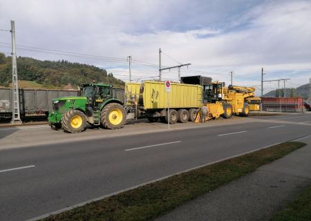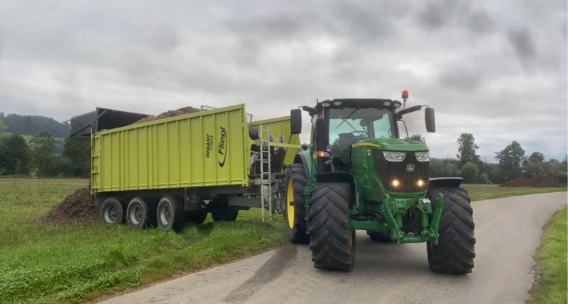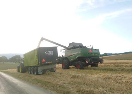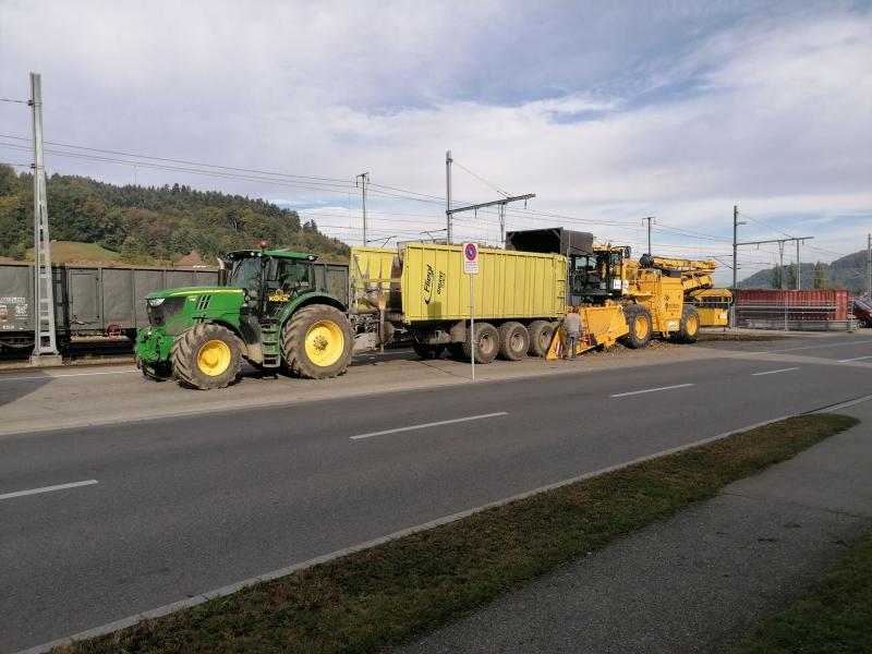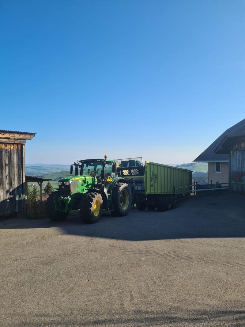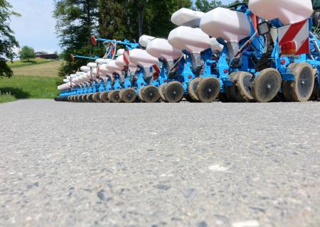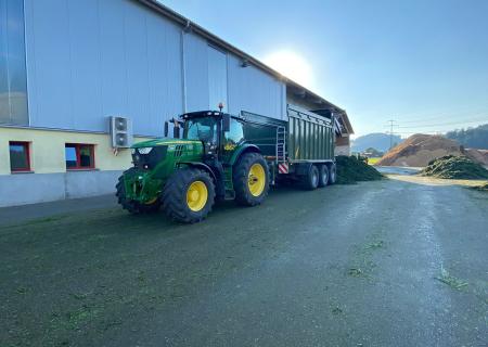 Bald darauf gesellte sich der Abschiebewagen Fliegl ASW 281 zum kleinen Maschinenpark dazu, welcher zusätzlich zur Maissaat auch Transportarbeiten mit sich brachte.