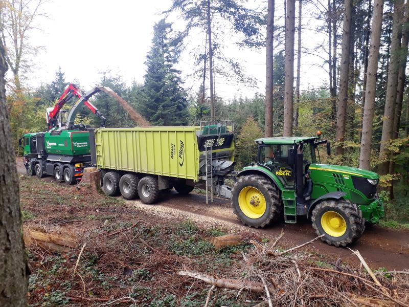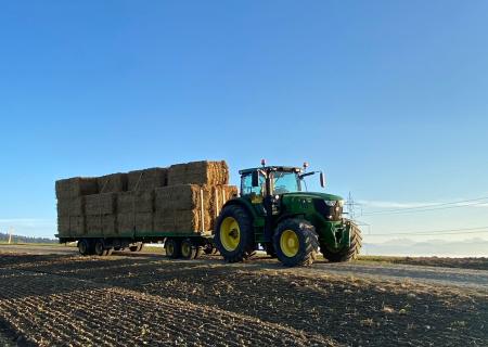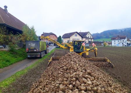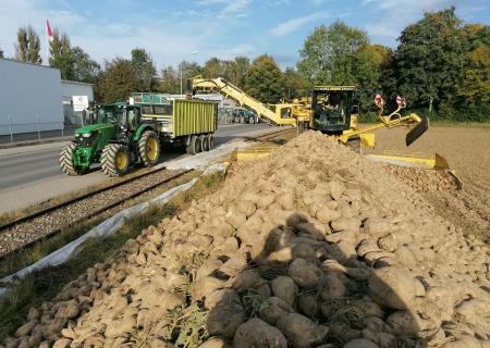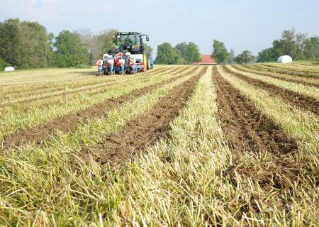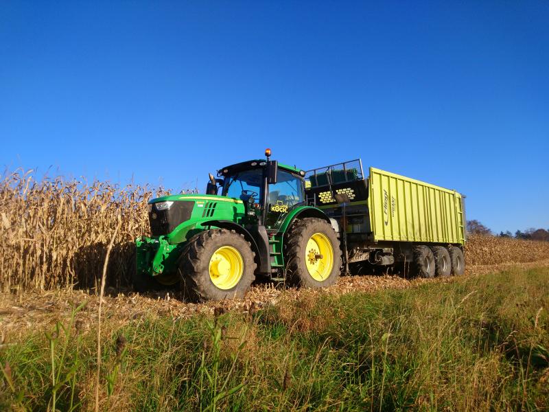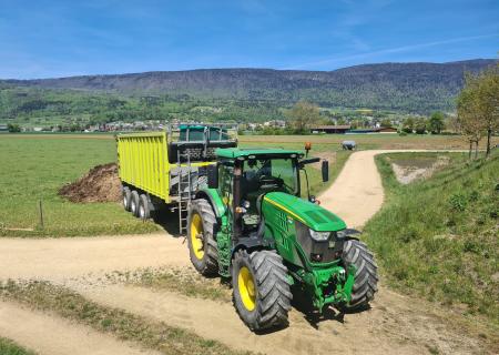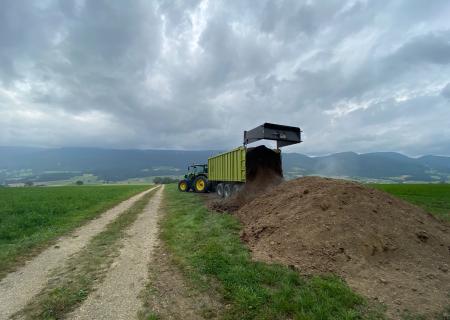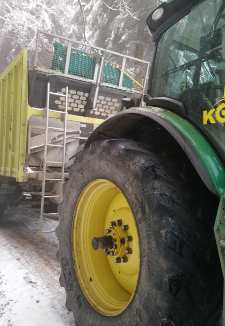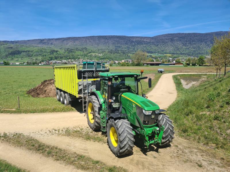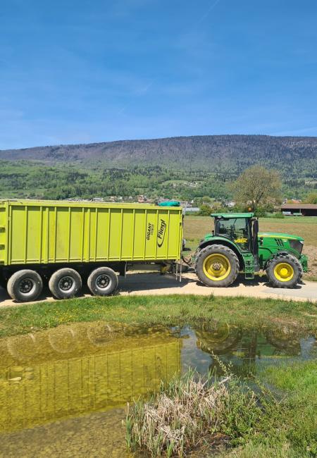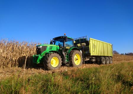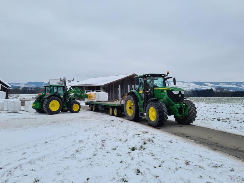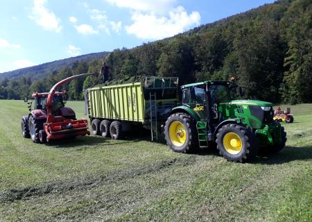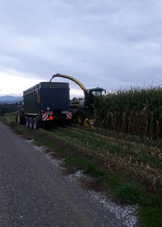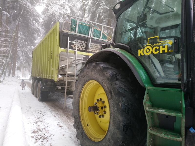 Bald darauf gesellte sich der Abschiebewagen Fliegl ASW 281 zum kleinen Maschinenpark dazu, welcher zusätzlich zur Maissaat auch Transportarbeiten mit sich brachte.