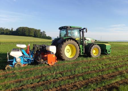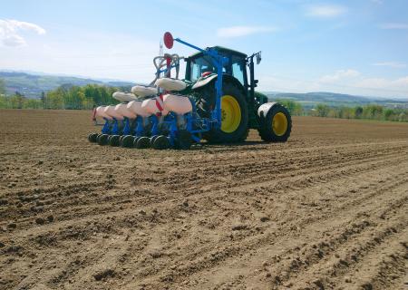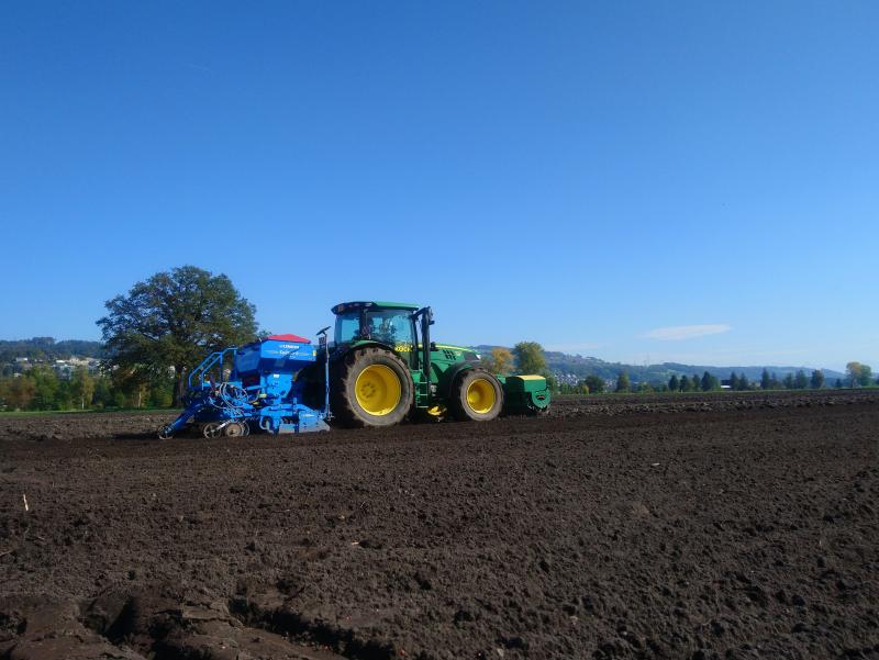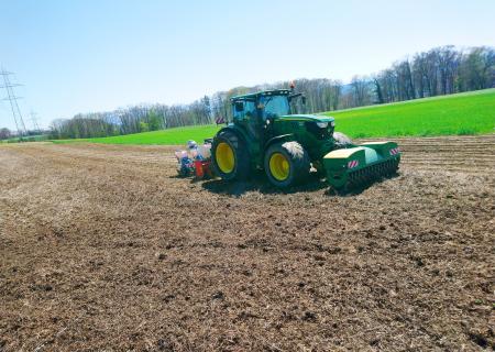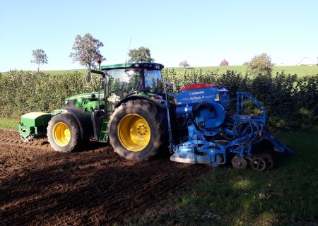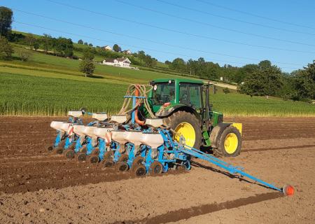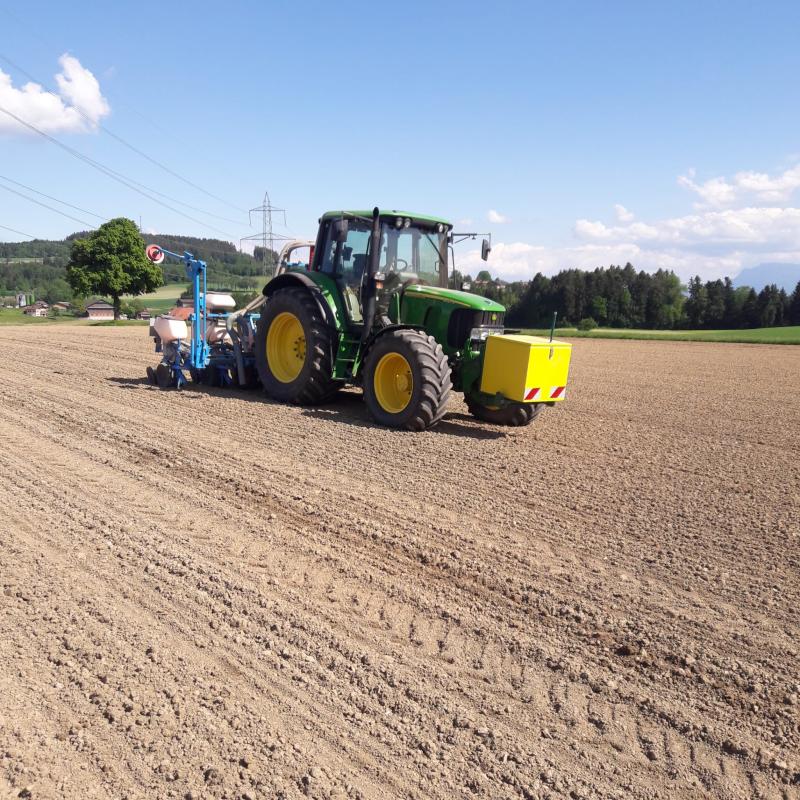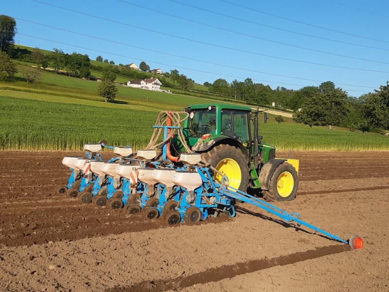 Mit einem John Deere 6150R und zwei Monosem Sämaschinen, 4-Reihig und 6-Reihig, starteten wir ins neue Abenteuer.